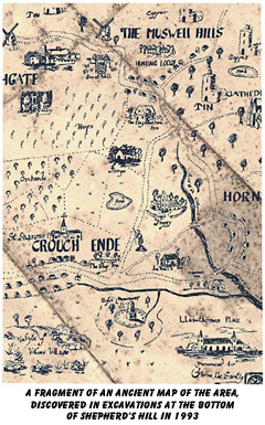 The Horne family became famous for the many charitable and magnanimous uses to which it endowed it's wealth, none more so than the building of a great cathedral in 1507, an act of such munificence that the king ennobled the family, Sir Josiah Horne becoming the first Baron Middlelane. The first Bishop, Ferme the Saintly, in recognition of the great gift of the Baron named his Diocese after the old family name and he became known as the Bishop of the See of Horne, latterly corrupted to Hornsey. The Middelane dynasty prospered for many years, until it aligned itself with the wrong side in the civil war, losing not only many of its young men but also all of it's titles and much of it's land. However, due to the clever subterfuge of hiding large numbers of gold bars in the old mine shafts they retained most of their wealth, and after the Reformation they resumed as Squires of the Manor, building a great house at the southernmost edge of their domain, next to an ancient park. They also built a magnificent hunting lodge at the top of the Muswell Hills, inviting gentry from near and far to hunt deer and peasants in the woods, followed by gargantuan feasts and banquets.